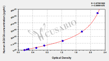 通過線性范圍來計算出實際的檢測樣本值,定量試劑盒標準曲線的相關系數R大于0.99。以CSB-E07270h(人脂聯素(ADP)ELISA Kit)為例的標準曲線。