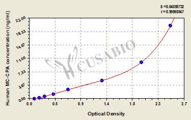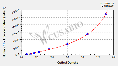通過線性范圍來計算出實際的檢測樣本值,定量試劑盒標(biāo)準(zhǔn)曲線的相關(guān)系數(shù)R大于0.99。以CSB-E07270h(人脂聯(lián)素(ADP)ELISA Kit)為例的標(biāo)準(zhǔn)曲線。