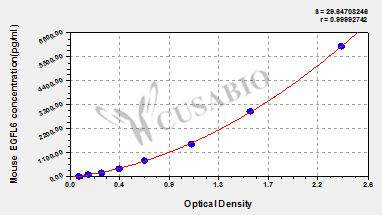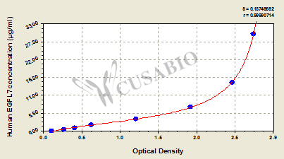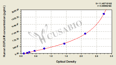 通過線性范圍來計算出實際的檢測樣本值,定量試劑盒標準曲線的相關(guān)系數(shù)R大于0.99。以CSB-E07270h(人脂聯(lián)素(ADP)ELISA Kit)為例的標準曲線。