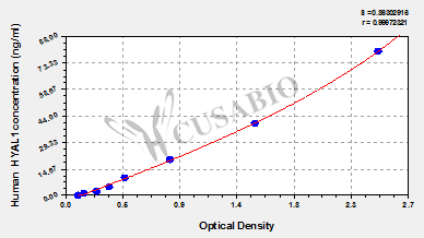 通過線性范圍來計算出實際的檢測樣本值,定量試劑盒標準曲線的相關系數R大于0.99。以CSB-E07270h(人脂聯素(ADP)ELISA Kit)為例的標準曲線。