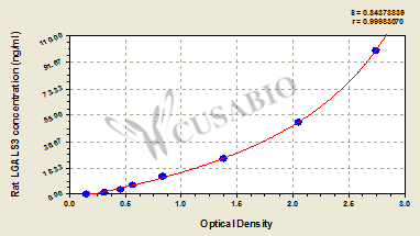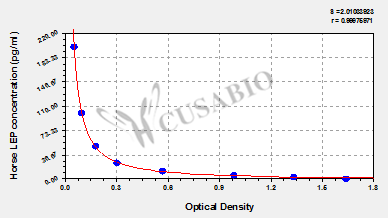 通過線性范圍來計算出實際的檢測樣本值,定量試劑盒標準曲線的相關系數R大于0.99。以CSB-E07270h(人脂聯素(ADP)ELISA Kit)為例的標準曲線。