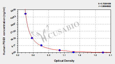 通過線性范圍來計算出實際的檢測樣本值,定量試劑盒標準曲線的相關系數R大于0.99。以CSB-E07270h(人脂聯素(ADP)ELISA Kit)為例的標準曲線。