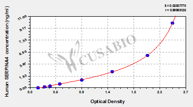 通過線性范圍來計算出實際的檢測樣本值,定量試劑盒標準曲線的相關系數R大于0.99。以CSB-E07270h(人脂聯素(ADP)ELISA Kit)為例的標準曲線。