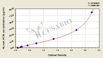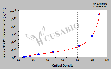 通過線性范圍來計算出實際的檢測樣本值,定量試劑盒標準曲線的相關系數R大于0.99。以CSB-E07270h(人脂聯素(ADP)ELISA Kit)為例的標準曲線。