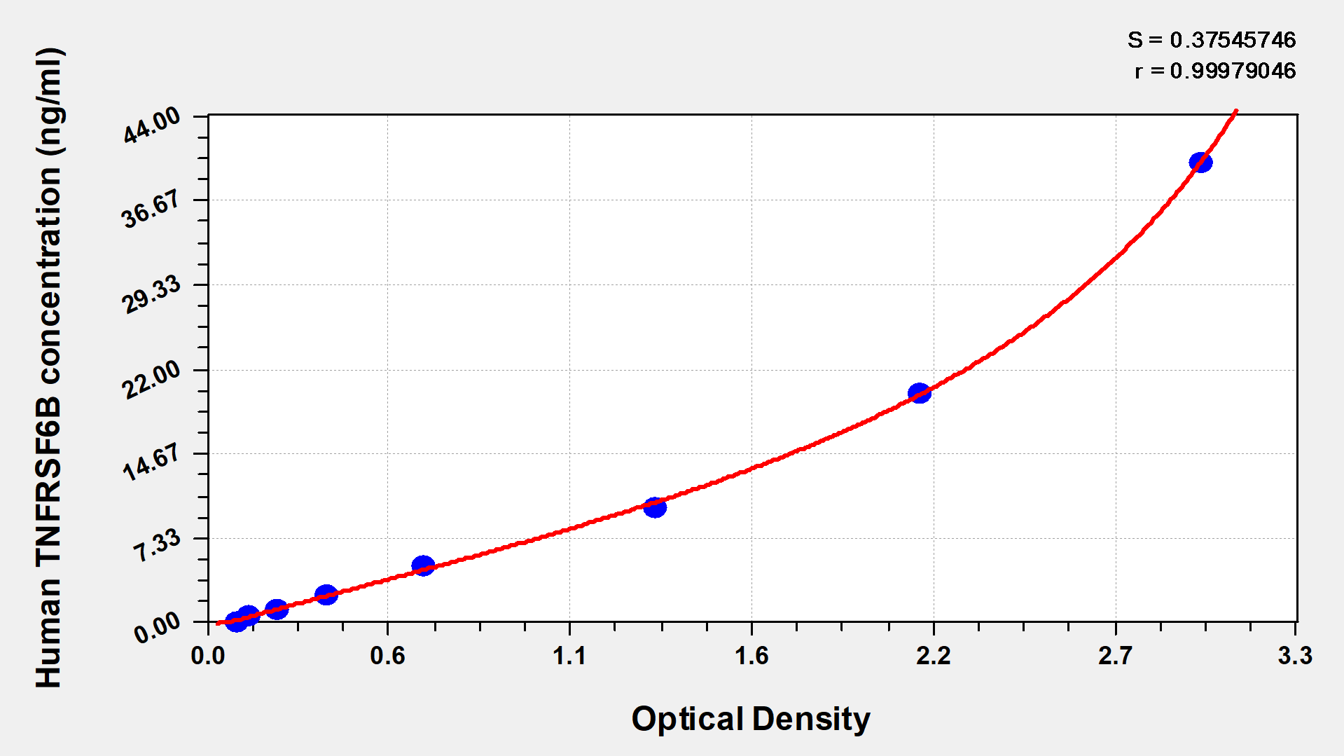 產品評價:我用CSB-EL023433HU檢測了人血漿中TFF3的蛋白濃度,檢測的標準品吸光度OD值為0.1149,0.1472,0.3027,0.5246,0.645,1.0269,1.7359 對應的標準品濃度分別為0,0.312,0.625,1.25,2.5,5,20ng/ml。測得的樣本濃度范圍是2.053732644-14.2