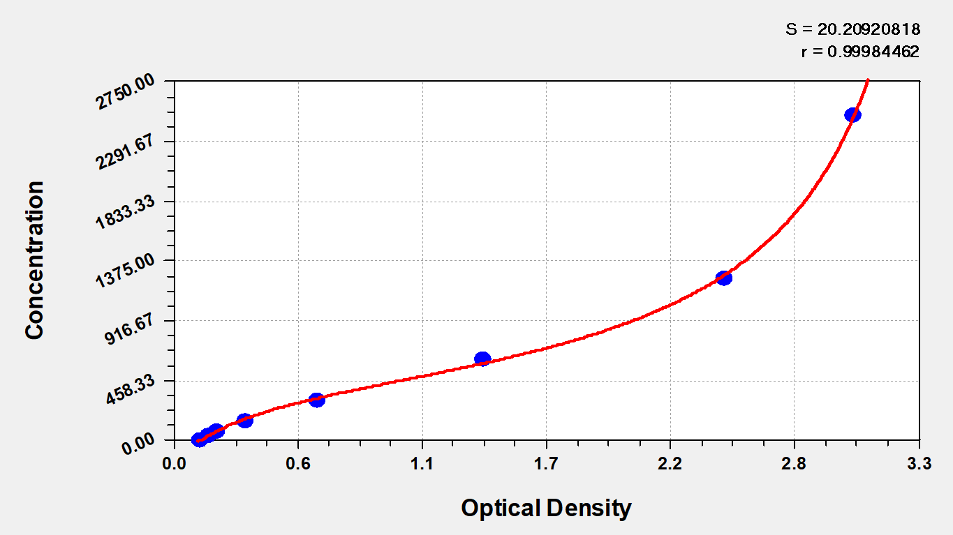通過線性范圍來計算出實際的檢測樣本值,定量試劑盒標準曲線的相關系數R大于0.99。以CSB-E07270h(人脂聯素(ADP)ELISA Kit)為例的標準曲線。
