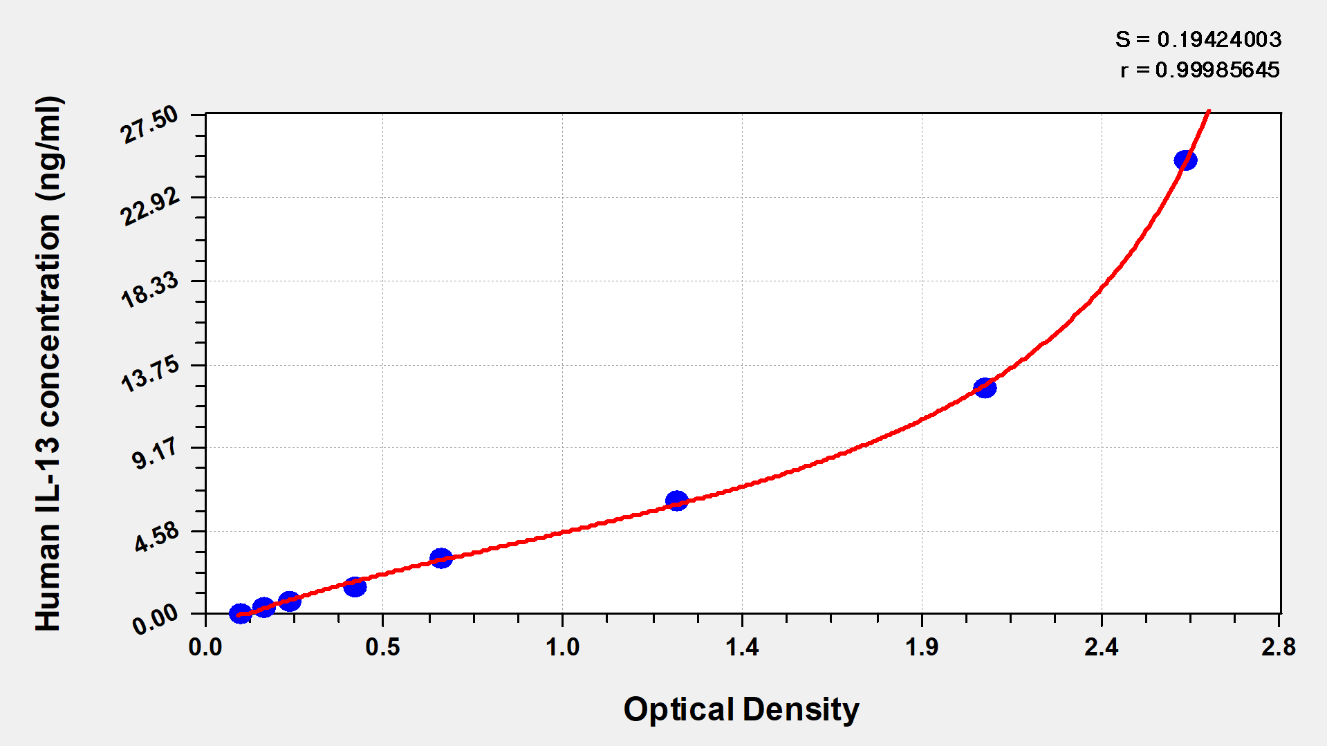 通過線性范圍來計(jì)算出實(shí)際的檢測樣本值,定量試劑盒標(biāo)準(zhǔn)曲線的相關(guān)系數(shù)R大于0.99。以CSB-E07270h(人脂聯(lián)素(ADP)ELISA Kit)為例的標(biāo)準(zhǔn)曲線。