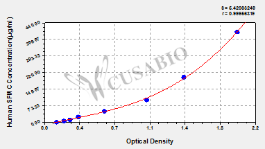 產品評價:我用CSB-EL023433HU檢測了人血漿中TFF3的蛋白濃度,檢測的標準品吸光度OD值為0.1149,0.1472,0.3027,0.5246,0.645,1.0269,1.7359 對應的標準品濃度分別為0,0.312,0.625,1.25,2.5,5,20ng/ml。測得的樣本濃度范圍是2.053732644-14.2
