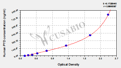 通過線性范圍來計算出實際的檢測樣本值,定量試劑盒標準曲線的相關系數R大于0.99。以CSB-E07270h(人脂聯素(ADP)ELISA Kit)為例的標準曲線。