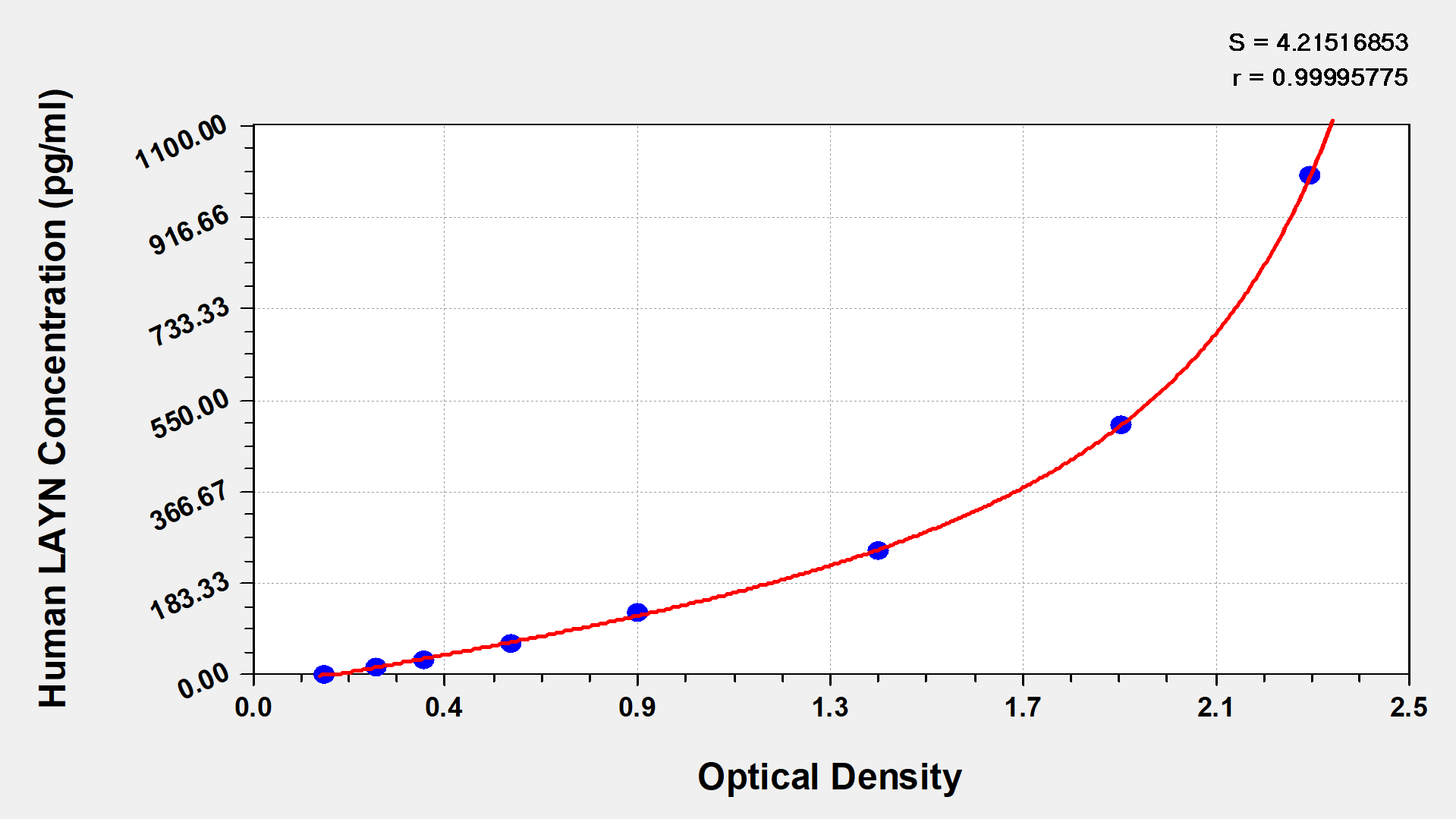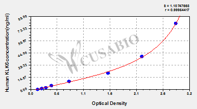 通過線性范圍來計算出實際的檢測樣本值,定量試劑盒標準曲線的相關系數R大于0.99。以CSB-E07270h(人脂聯素(ADP)ELISA Kit)為例的標準曲線。