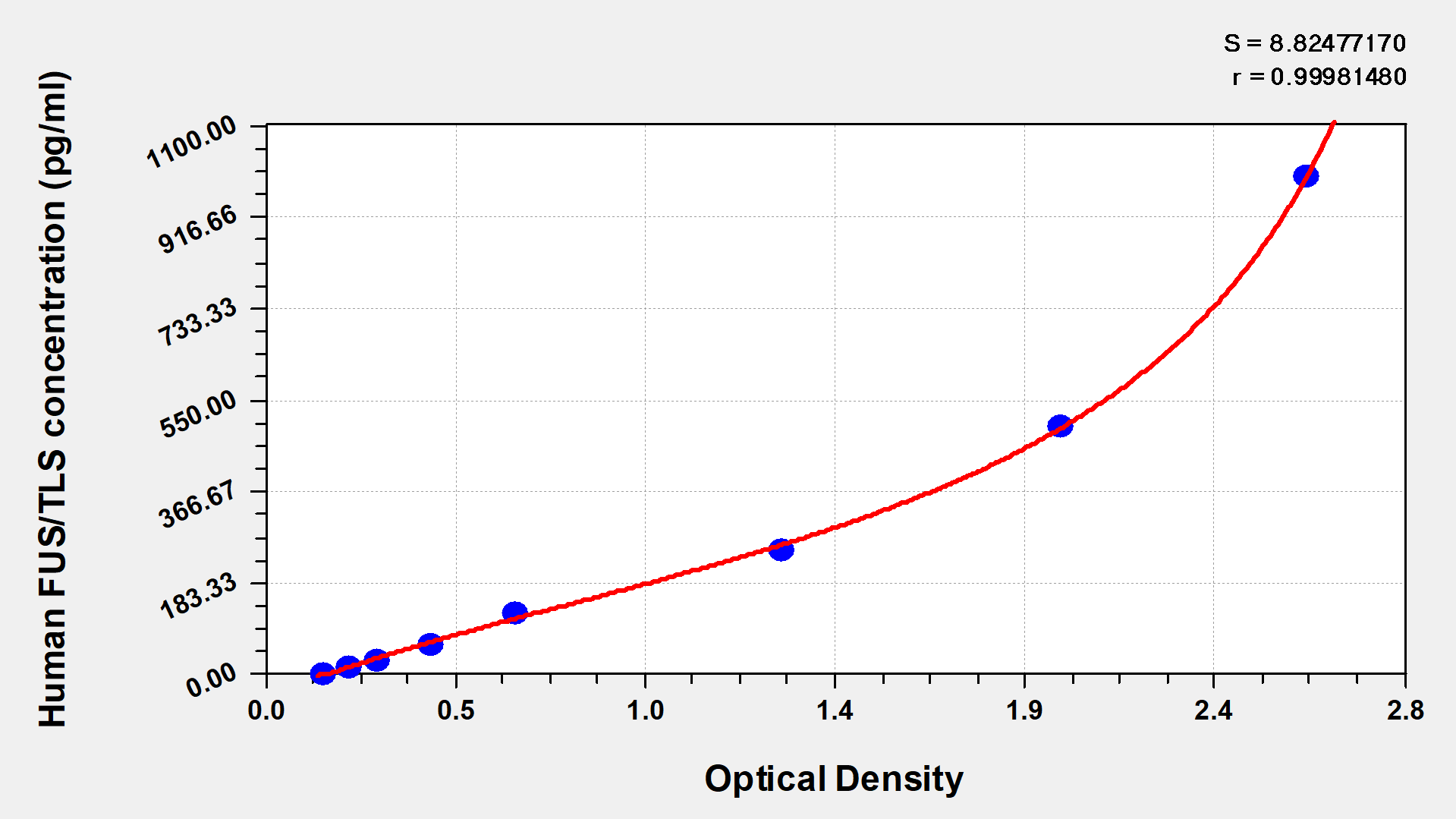 通過線性范圍來計(jì)算出實(shí)際的檢測樣本值,定量試劑盒標(biāo)準(zhǔn)曲線的相關(guān)系數(shù)R大于0.99。以CSB-E07270h(人脂聯(lián)素(ADP)ELISA Kit)為例的標(biāo)準(zhǔn)曲線。