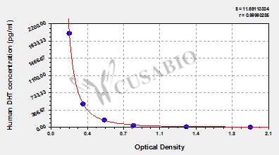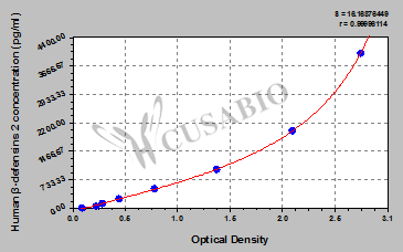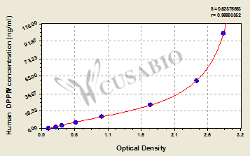 通過線性范圍來計算出實際的檢測樣本值,定量試劑盒標準曲線的相關系數R大于0.99。以CSB-E07270h(人脂聯素(ADP)ELISA Kit)為例的標準曲線。