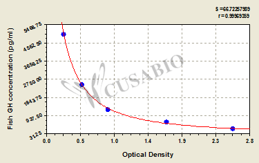 通過線性范圍來計算出實際的檢測樣本值,定量試劑盒標準曲線的相關系數R大于0.99。以CSB-E07270h(人脂聯素(ADP)ELISA Kit)為例的標準曲線。