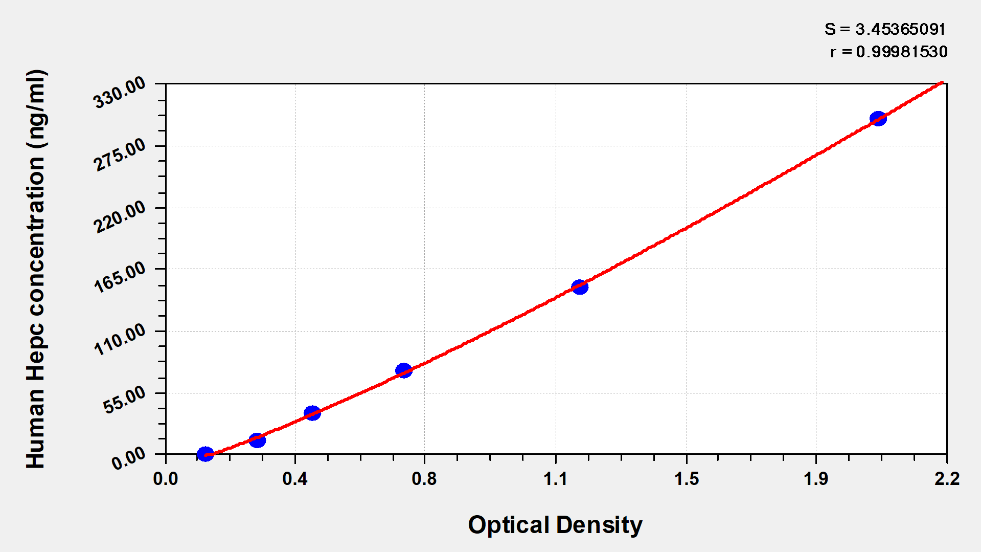 最低檢測限是靈敏度的測試指標。由使用的抗體效價等決定的,在研發過程中,一般會優化保證高靈敏度、低背景的檢測結果從而大大提高試劑盒的靈敏度。檢測限越低,靈敏度越高。通過將零標準重復獲得的平均 O.D. 加上3個標準偏差來確定靈敏度。