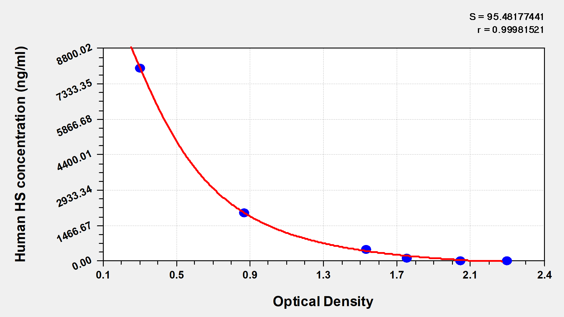 最低檢測限是靈敏度的測試指標。由使用的抗體效價等決定的,在研發(fā)過程中,一般會優(yōu)化保證高靈敏度、低背景的檢測結果從而大大提高試劑盒的靈敏度。檢測限越低,靈敏度越高。通過將零標準重復獲得的平均 O.D. 加上3個標準偏差來確定靈敏度。