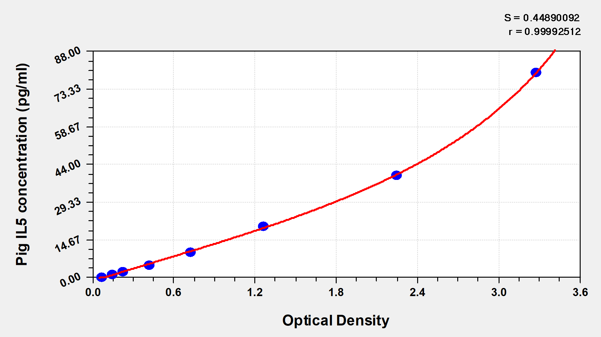 產品評價:我用CSB-E08392h檢測了人血漿中OPN的濃度,此次實驗測得標準品的OD值分別為0.0769,0.1987,0.2878,0.522,0.8424,1.6453,2.5201,3.4961 對應的標準品濃度分別為0,0.78,1.56,3.12,6.25,12.5,25,50ng/ml。 檢測的樣本OPN濃度范圍是1.058-130.875ng/ml
