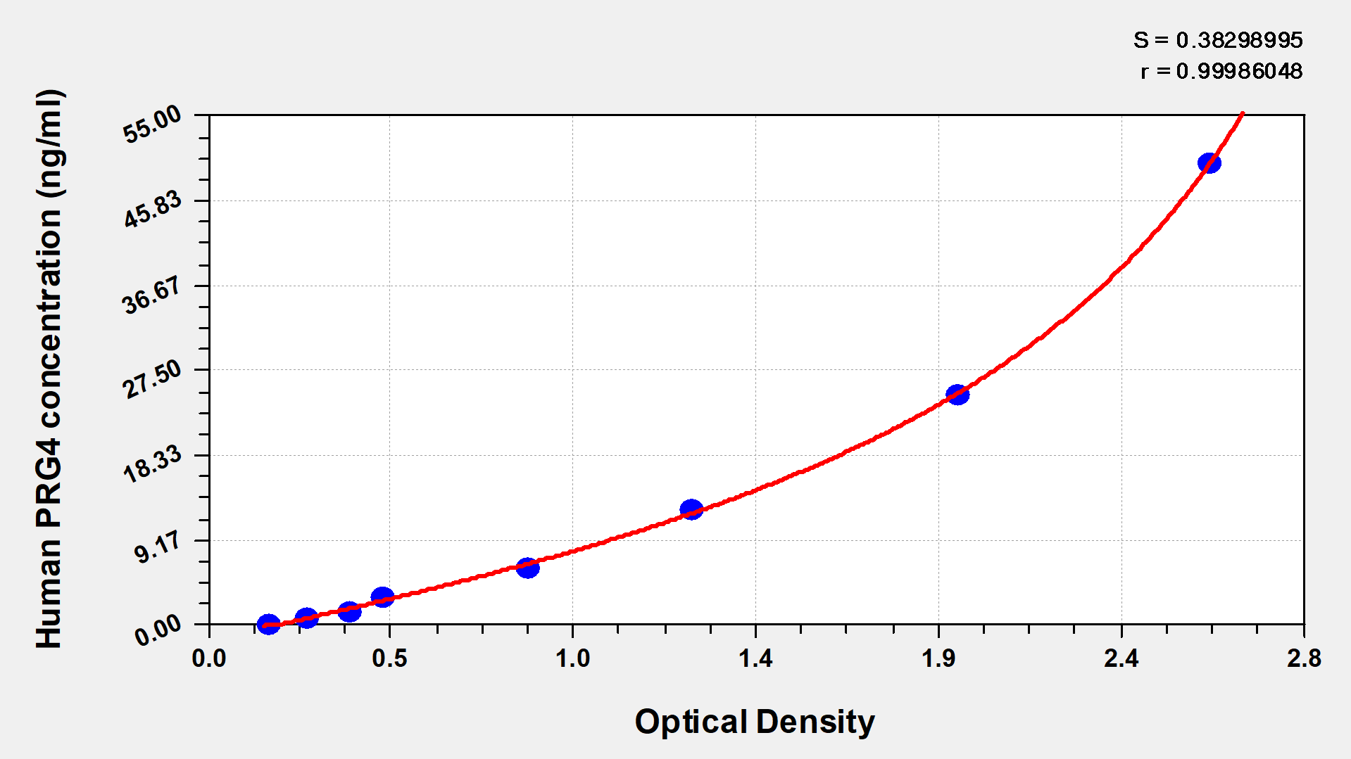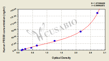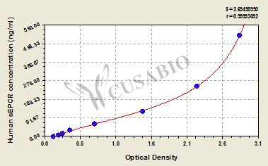 通過(guò)線性范圍來(lái)計(jì)算出實(shí)際的檢測(cè)樣本值,定量試劑盒標(biāo)準(zhǔn)曲線的相關(guān)系數(shù)R大于0.99。以CSB-E07270h(人脂聯(lián)素(ADP)ELISA Kit)為例的標(biāo)準(zhǔn)曲線。