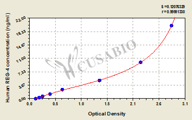 通過線性范圍來計(jì)算出實(shí)際的檢測(cè)樣本值,定量試劑盒標(biāo)準(zhǔn)曲線的相關(guān)系數(shù)R大于0.99。以CSB-E07270h(人脂聯(lián)素(ADP)ELISA Kit)為例的標(biāo)準(zhǔn)曲線。