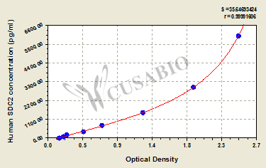 通過線性范圍來計算出實際的檢測樣本值,定量試劑盒標準曲線的相關系數R大于0.99。以CSB-E07270h(人脂聯素(ADP)ELISA Kit)為例的標準曲線。