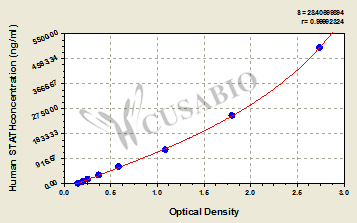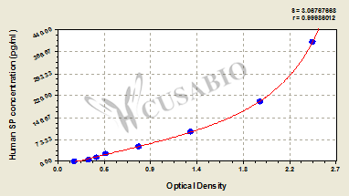 通過線性范圍來計算出實際的檢測樣本值,定量試劑盒標準曲線的相關系數(shù)R大于0.99。以CSB-E07270h(人脂聯(lián)素(ADP)ELISA Kit)為例的標準曲線。