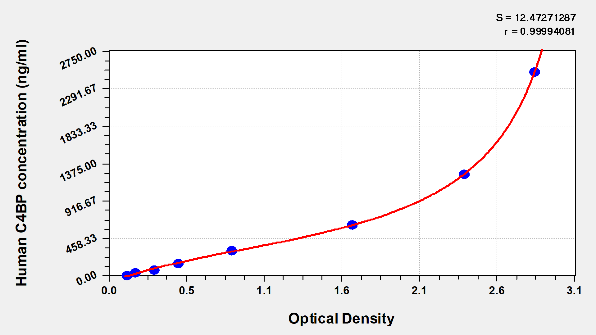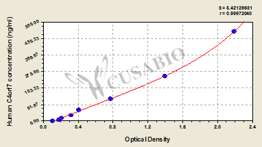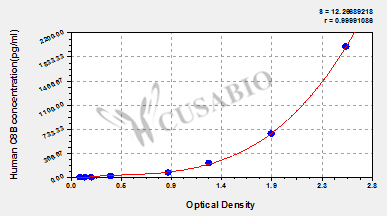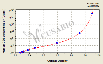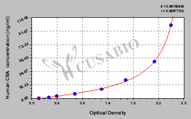 通過線性范圍來計算出實際的檢測樣本值,定量試劑盒標準曲線的相關系數(shù)R大于0.99。以CSB-E07270h(人脂聯(lián)素(ADP)ELISA Kit)為例的標準曲線。