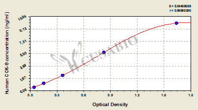 產品評價:我用CSB-E08392h檢測了人血漿中OPN的濃度,此次實驗測得標準品的OD值分別為0.0769,0.1987,0.2878,0.522,0.8424,1.6453,2.5201,3.4961 對應的標準品濃度分別為0,0.78,1.56,3.12,6.25,12.5,25,50ng/ml。 檢測的樣本OPN濃度范圍是1.058-130.875ng/ml