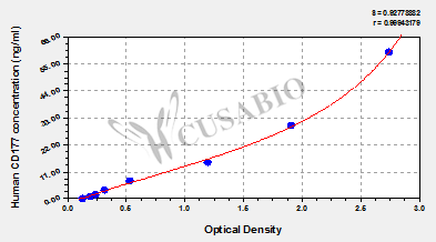 通過線性范圍來計算出實際的檢測樣本值,定量試劑盒標準曲線的相關系數R大于0.99。以CSB-E07270h(人脂聯素(ADP)ELISA Kit)為例的標準曲線。