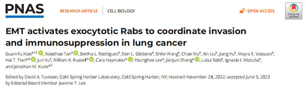 PNAS|上皮間質轉化(EMT)激活胞外分泌Rab蛋白,協調肺癌的侵襲和免疫抑制