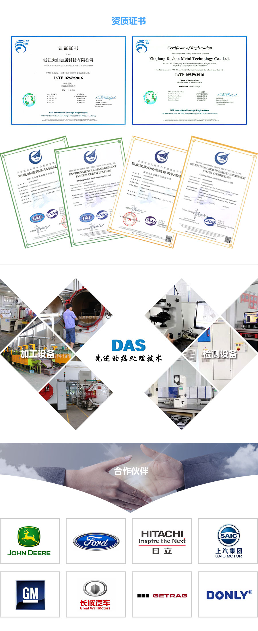 證書 IATF16949:2016質量管理體系認證;GB/T 24001-2016 idt ISO14001:2015 環境質量管理體系認證;