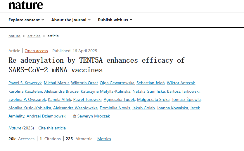 01 靶點(diǎn):TENT5A應(yīng)用:傳染病疫苗開(kāi)發(fā)(如COVID-19、瘧疾)和實(shí)體瘤免疫治療(如肝癌、黑色素瘤)來(lái)源:Re-adenylation by TENT5A enhan