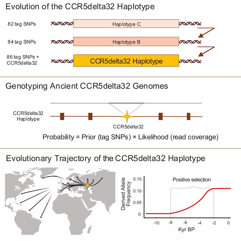 01靶點(diǎn):CCR5應(yīng)用:HIV-1感染來(lái)源:Tracing the evolutionary history of the CCR5delta32 deletion via ancient and modern g