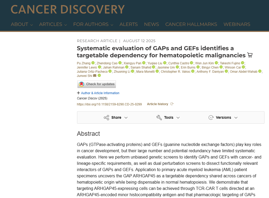 [4]Systematic evaluation of GAPs and GEFs identifies a targetable dependency for hematopoietic malignancies.Cancer Discov,2025 Aug 12