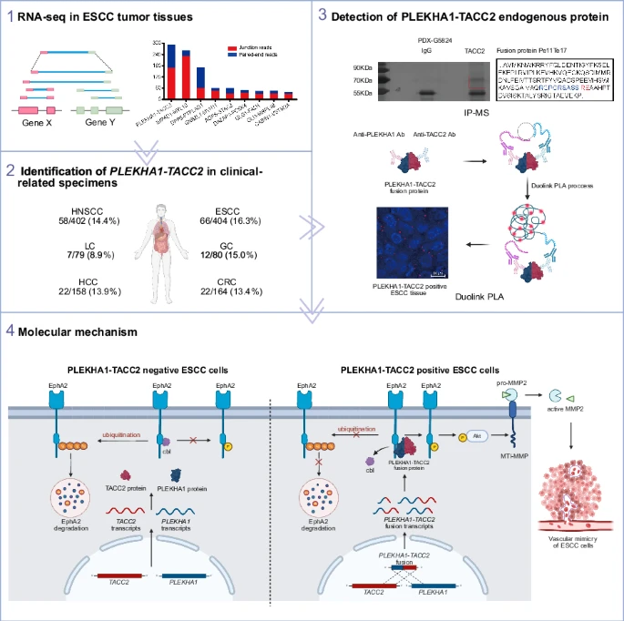 來源:The PLEKHA1-TACC2 fusion gene drives tumorigenesis via vascular mimicry formation in esophageal squamous-cell carcinoma.Cell Death Differ,2025 Jul 05