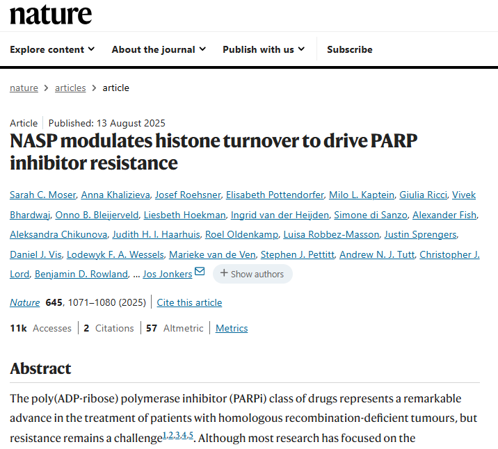 來源:NASP modulates histone turnover to drive PARP inhibitor resistance.Nature,2025 Sep