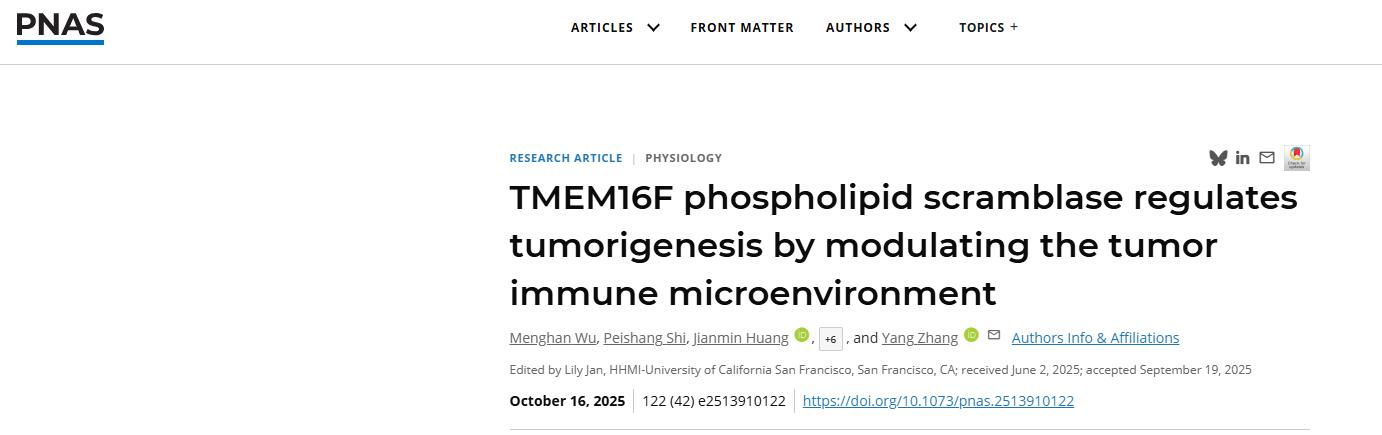 [1]TMEM16F phospholipid scramblase regulates tumorigenesis by modulating the tumor immune microenvironment.Proc Natl Acad Sci U S A,2025 Oct 21