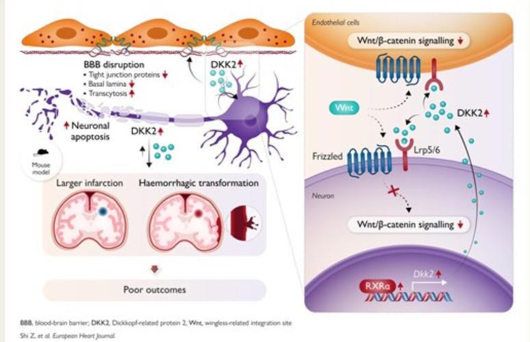 來源:Dickkopf-related protein 2 impairs neurovascular Wnt signalling and worsens stroke outcome dickkopf.Eur Heart J,2025 Dec 26