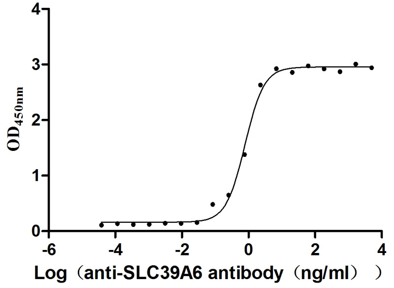 Activity: Measured by its binding ability in a functional ELISA. Immobilized Human SLC39A6 at 1 μg/ml can bind Anti-SLC39A6 recombinant antibody (CSB-RA621669MA1HU), the EC50 is 0.6873-0.9010 ng/mL.